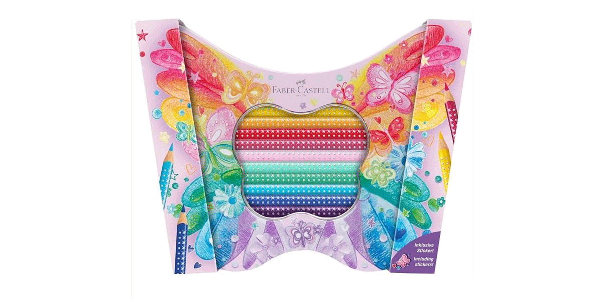 فابرکاستل مداد رنگی اسپارکل 12+8 رنگ پروانه