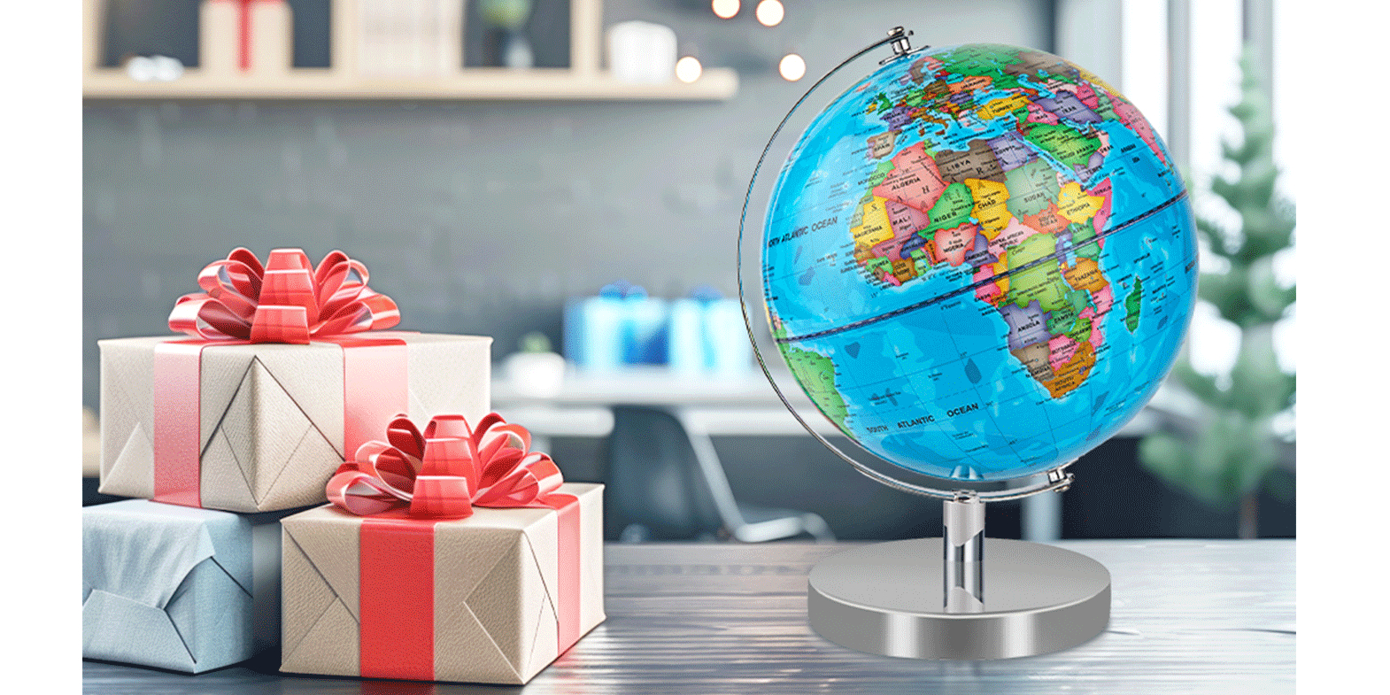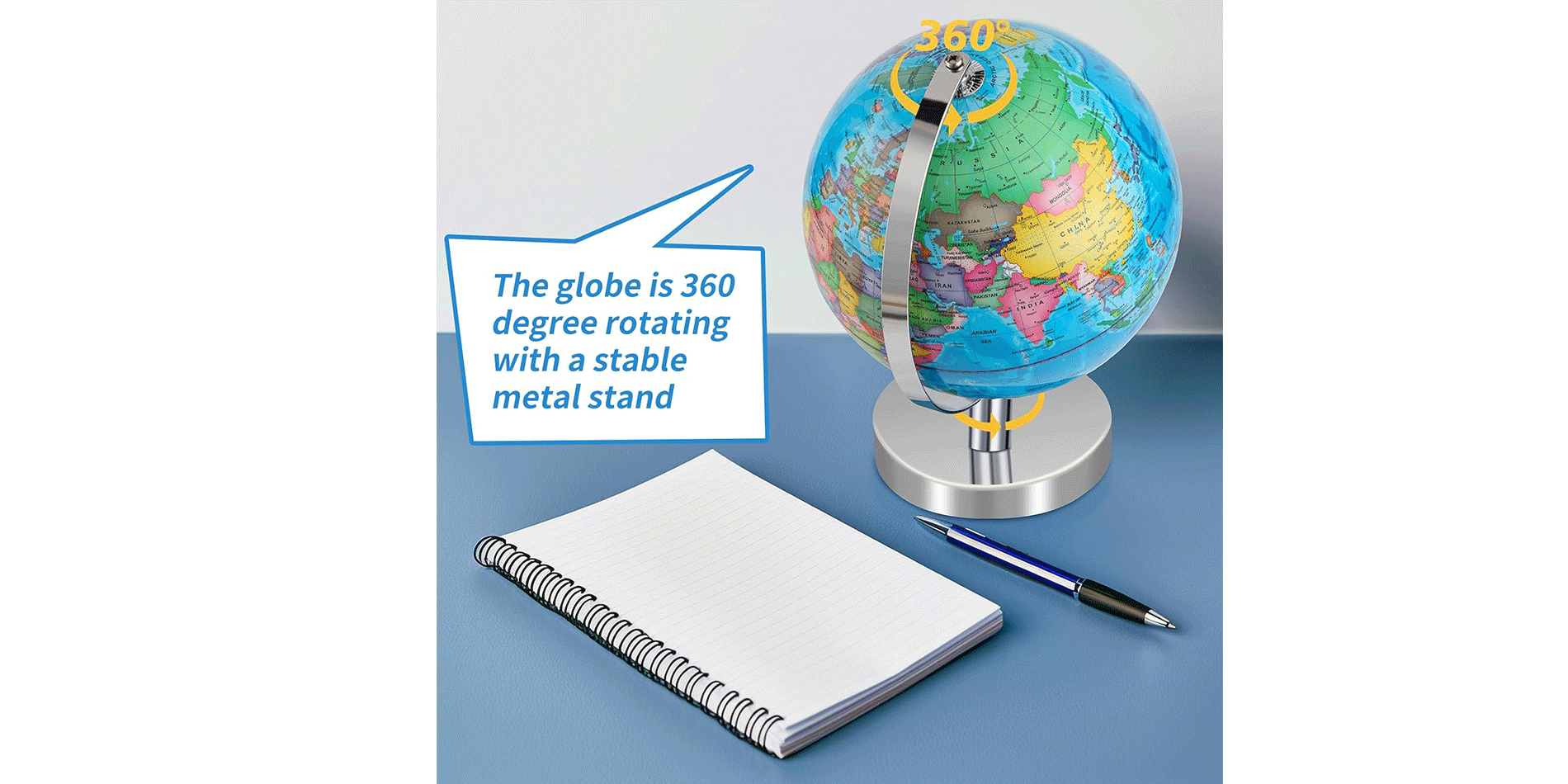 • کره انگلیسی سایز ۱۴ با پایه استیل براق؛ جلوه‌ای خاص برای میز کار و کتابخانه شما.