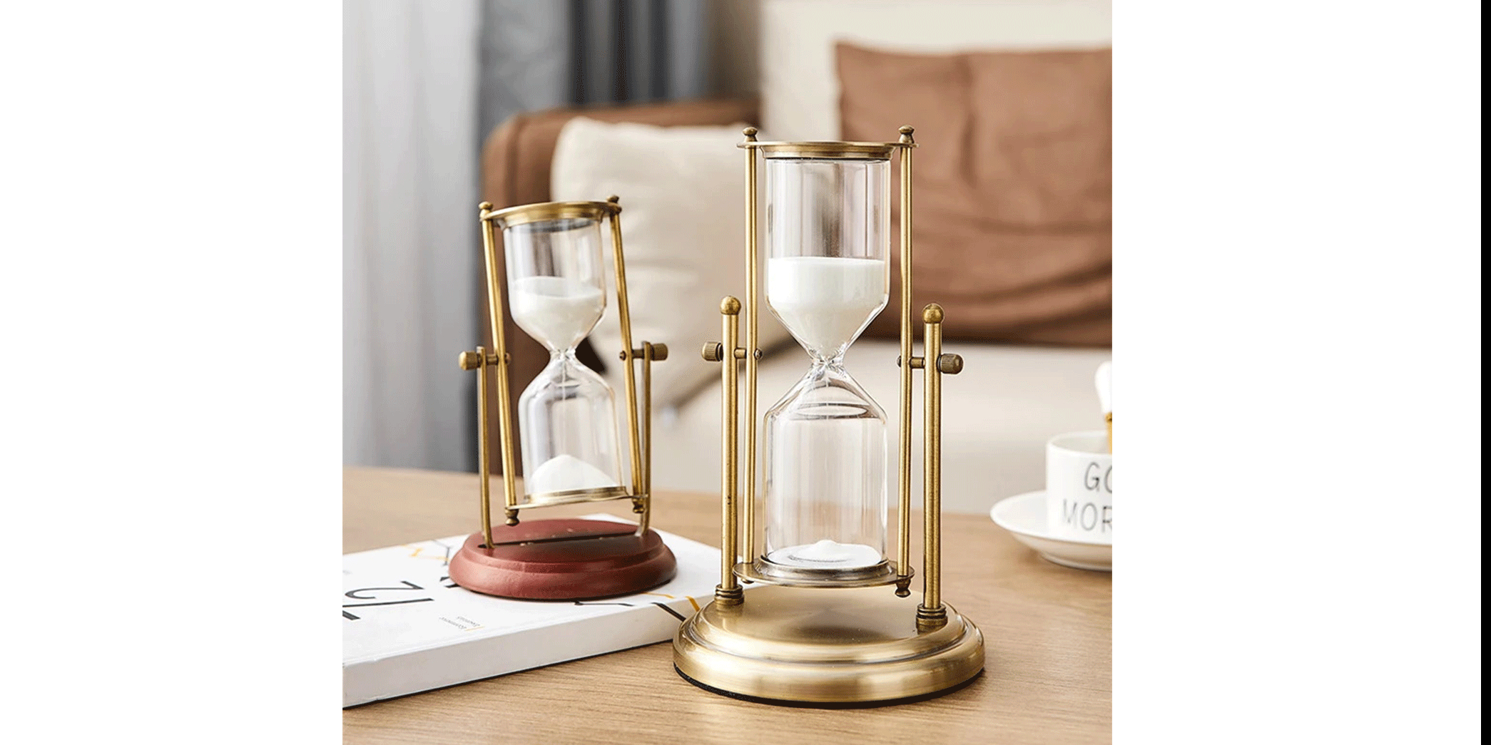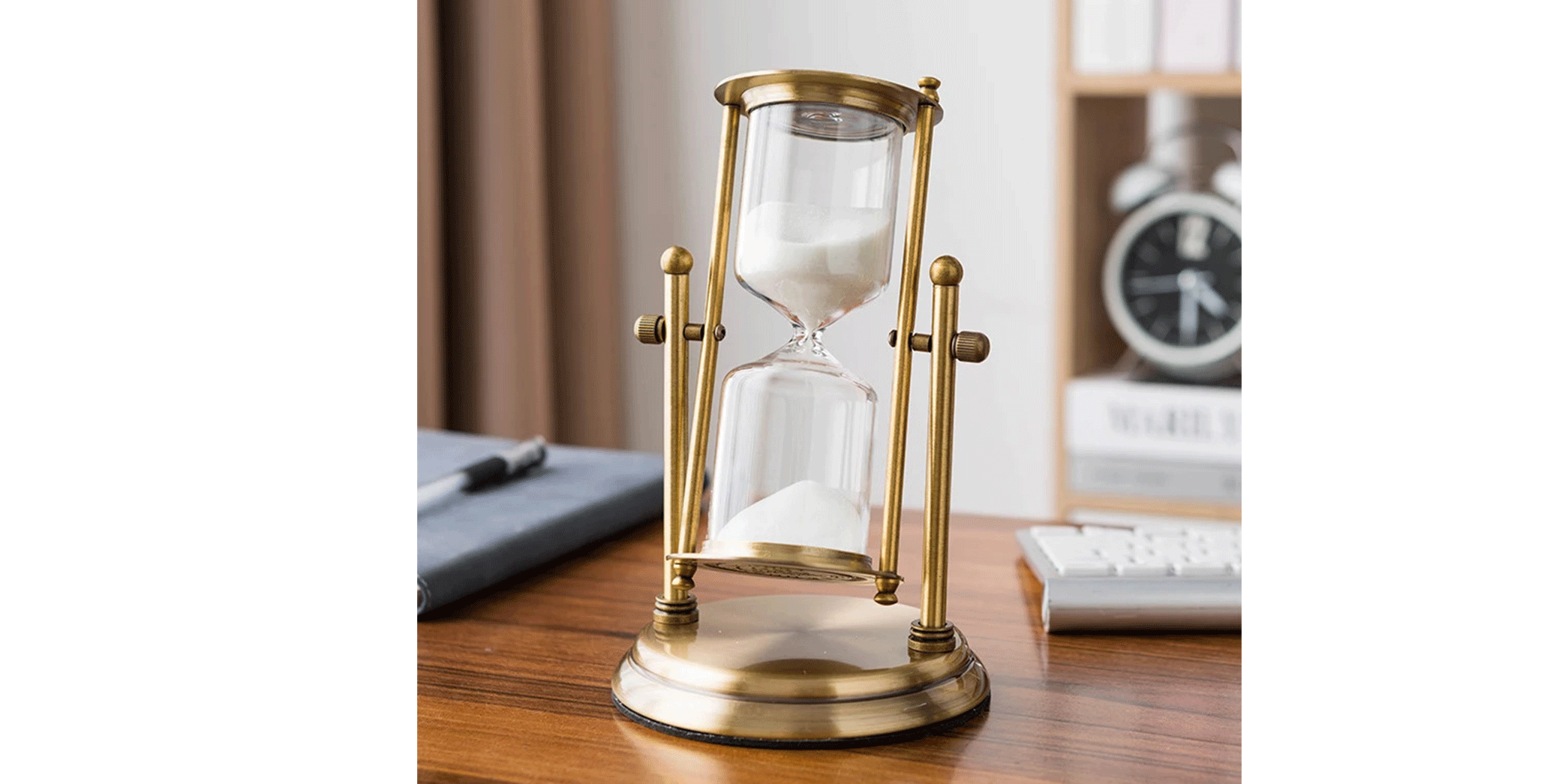 زمان را زیباتر ببینید ⏳ ساعت شنی دکوری با پایه متال.